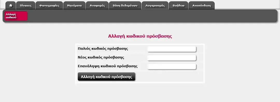 Αλλαγή κωδικού πρόσβασης στην εφαρμογή διαχείρισης