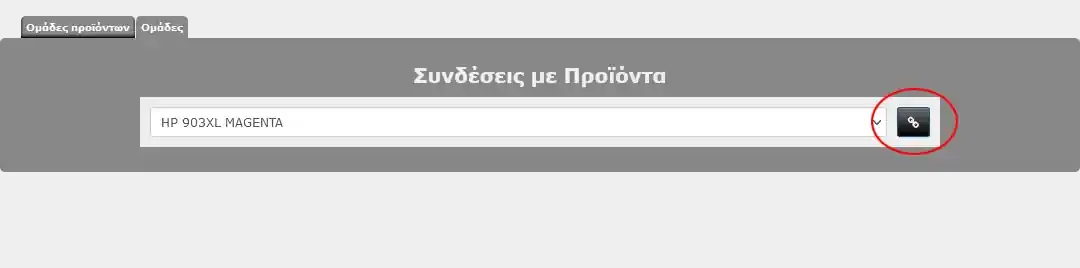 Επιλέγουμε το προϊόν που θέλουμε να συνδέσουμε στην ομάδα αυτή και κάνουμε κλικ στο κουμπί σύνδεσης, δεξιά του πλαισίου επιλογής.